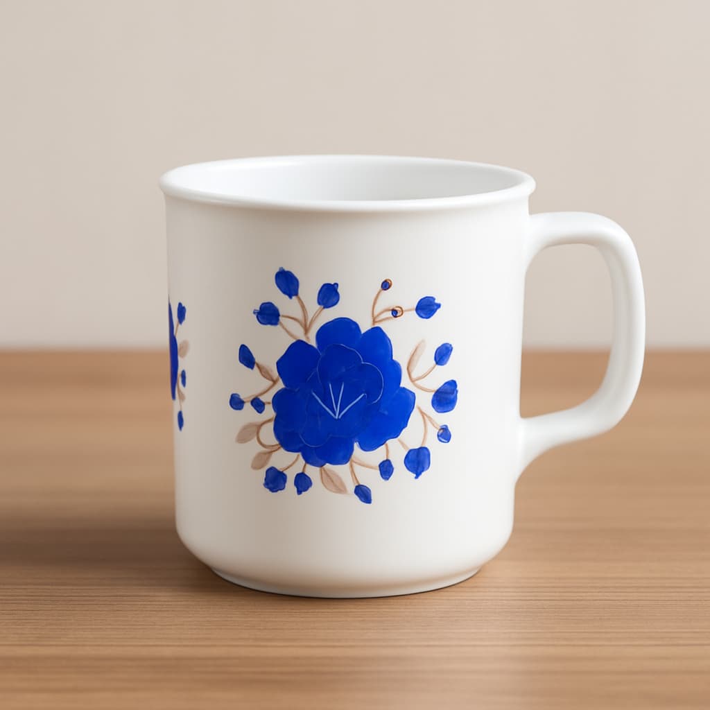 Jarro kero Nro. 8, 103g, flor camote azul, resistente, elegante y funcional.